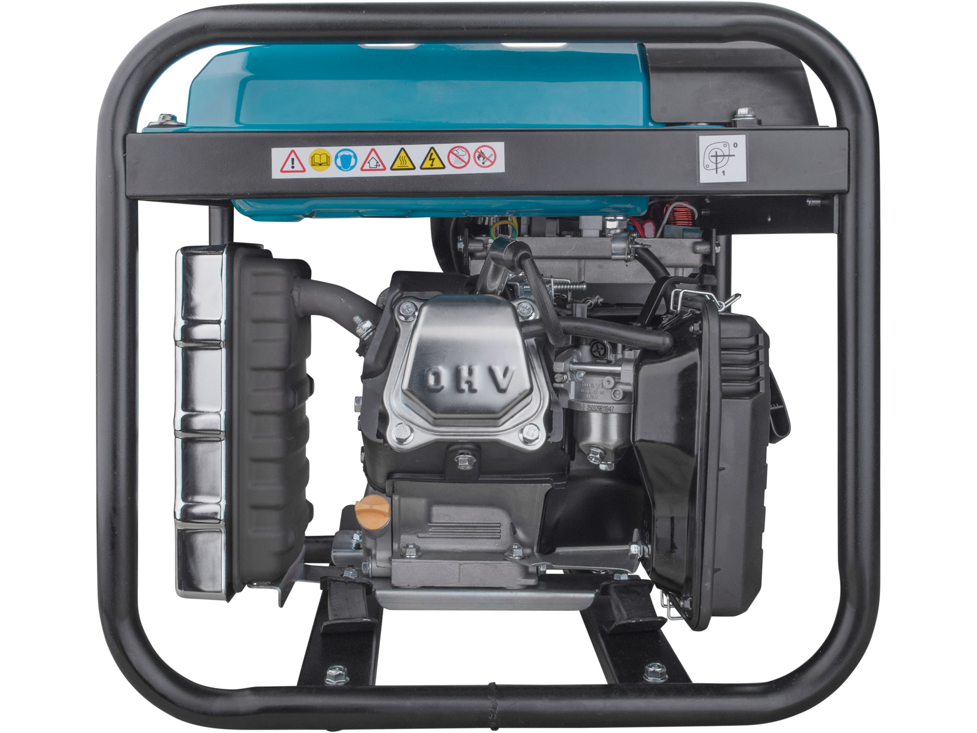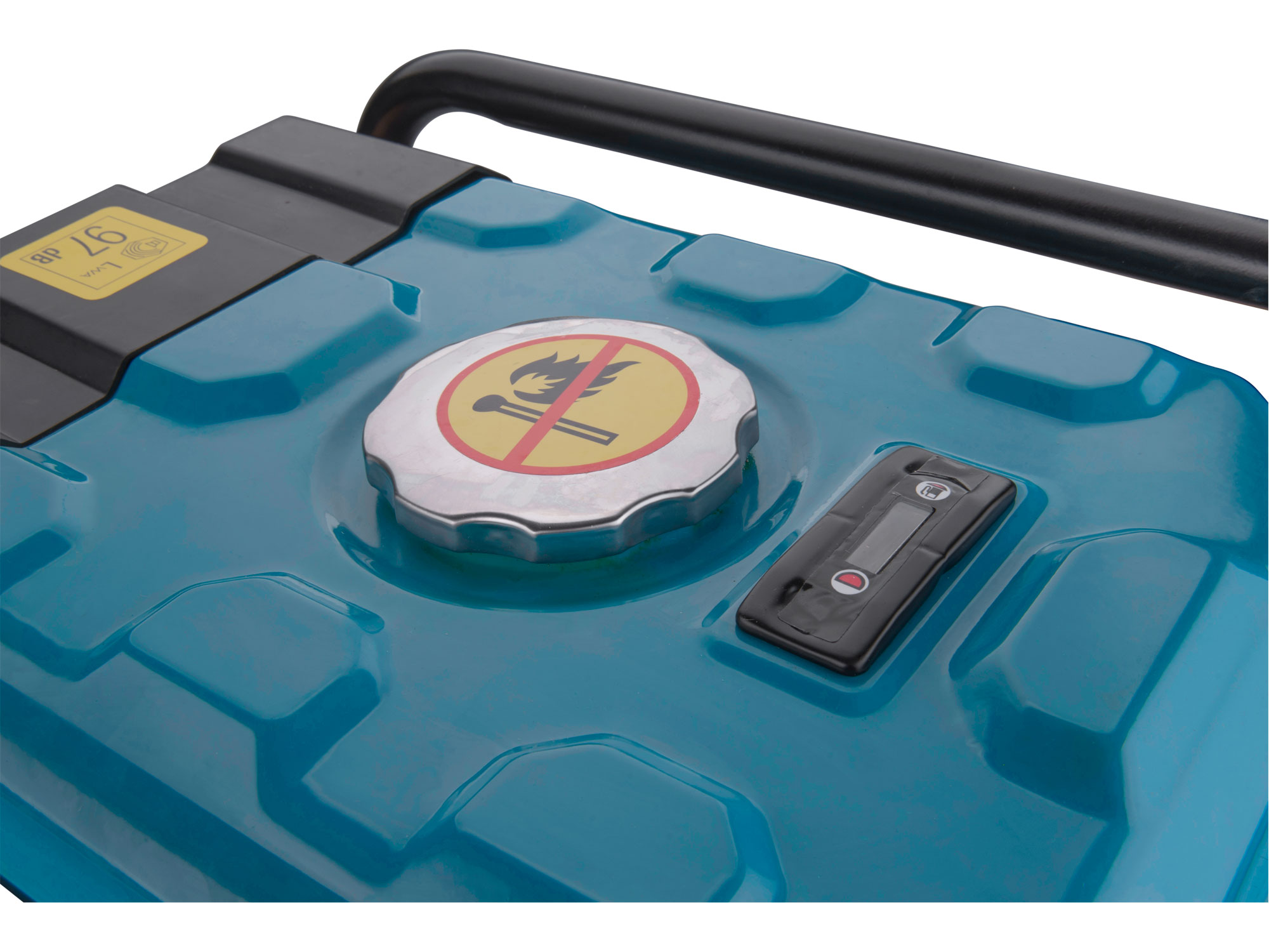 Srdcem centrály je čtyřtaktní motor o výkonu 7,5HP, který umožňuje dlouhodobý elektrický výkon 4,0kW a krátkodobě až 4,3kW. Tento výkon postačí pro napájení většiny nářadí, čerpadel či topných spotřebičů. Dvojice zásuvek 230V/16A umožňuje současné použití více zařízení, zatímco 12V výstup s autozásuvkou poskytuje napájení drobných spotřebičů s odběrem do 8,3A – například USB nabíječek, chladicích boxů, vysavačů apod. Přiložené kabely zároveň umožňují nouzové nabíjení autobaterií. Digitální panel zobrazuje celkový i aktuální čas provozu, výstupní napětí a frekvenci.